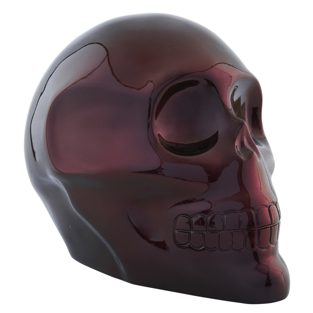 Subasta 885, Lote # 569 VÍCTOR HUGO REYES (Oaxaca, Oaxaca, 1975 - ) Skull Sin firma Litocráneo: esmalte cerámico sobre fibra de vidrio Con certificado de autenticidad de Mexicráneos / Locos por el Arte. Estudió Arquitectura en la Universidad Iberoamericana. Desde 1999 ha participado en numerosas colectivas en países como Costa Rica, España, Hong Kong, Francia, Dinamarca e Inglaterra. Entre sus muestras individuales recientes destacan "Naturas" presentada en Casa Lamm, "Residuales" que itineró en el Instituto de México en Madrid y en el Instituto de México en París y Marsella, "Sell portrait" en Galerie T40 en Düsseldorf, Alemania, "Víctor Hugo Reyes Peintures" en L'espace Icare en París, "Multitudes" en Galería Óscar Román y "Espacio inhibido" en Galería Klaus Steinmetz Contemporary en Costa Rica. Desde el principio, el color ha tenido un papel protagónico en su propuesta plástica y creativa. También ha experimentado con nuevos procesos a partir de sus conocimientos arquitectónicos, pues le interesa utilizar materiales que permitan que su obra sea perdurable y entonces pueda pasar de generación en generación. Fuente consultada: "Naturas de Víctor Hugo Reyes". México. Casa Lamm, boletín de prensa No. 0017, 5 de noviembre del 2010. 27 x 24 x 34.5 cm Estimado $11,000-20,000