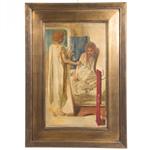P. Ambrose. "Figuras". Óleo sobre tela. Enmarcado en madera dorada. Presenta marcas, desgaste y manchas. Dimensiones: 74 x 43 cm. Estimado $3,500-4,500