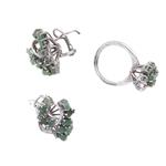 Anillo y par de aretes con esmeraldas en plata paladio.