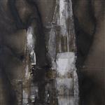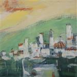 b) Paisaje urbano nocturno. Firmado en el ángulo inferior derecho. Enmarcado en madera dorada.