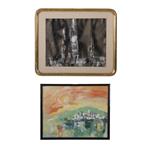 a) Paisaje urbano. Firmado en el ángulo inferior izquierdo. Enmarcado en madera tallada.