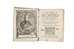 8o. marquilla, 7 h. + 624 p. Della popolazione, e de' Progressi nell' America Settentrionale conosciuta sotto nome di Nuova Spagna. Tradotta en Toscazo de un' Académico della Crusca. Ocho láminas: Retratos de Antonio de Solís, Hernán Cortés, Moctezuma y Cinco escenas de la Conquista. Letras capitulares grabadas. Encuadernado en pergamino.