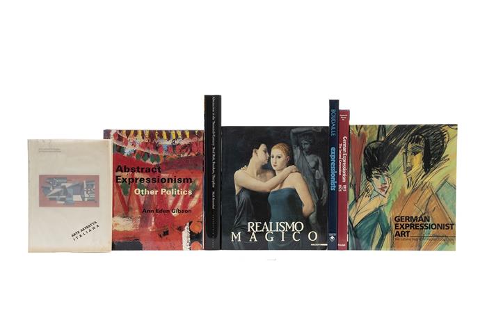 Subasta 936, Lote # 100 BC - Libros sobre Vanguardias en el Arte. a) Rosenthal, Mark. Abstraction in the Twentieth Century: Total Risk, Freedom, Discipline. New York: The Solomon R. Guggenheim Foundation, 1996. fo. marquilla, 310 p. Encuadernado en pasta dura. b) Boudaille, Georges. Expressionists. New Jersey: Chartwell Books, sin año. fo., 170 p. Encuadernado en pasta dura. c) Barron, Stephanie. German Expressionism, 1915 - 1925: The Second Generation. Los Angeles: Los Angeles County Museum of Art, 1988. 4o. marquilla, 197 p. Incluye catálogo de libros de la editorial Prestel. Encuadernado en pasta dura. d) German Expressionist Art: The Ludwig and Rosy Fischer Collection. Virginia: The Virginia Museum of Fine Arts, 1987. 4o. marquilla, 79 p. Encuadernado en rústica. e) Fagiolo dell'Arco, Maurizio. Realismo Mágico. Pintura e Scultura in Italia, 1919 - 1925. Milano: Mazzotta, 1988. 4o. marquilla, 351 p. Incluye recibo de compra. Encuadernado en rústica. f) Gibson, Ann Eden. Abstract Expressionism: Other Politics. New Haven: Yale University, 1997. 4o. marquilla, 248 p. Encuadernado en pasta dura. g) Fagiolo dell'Arco, Maurizio. Arte Astratta Italiana: Dal Futurismo Agli Anni Trenta. Roma: De Luca Editore, 1986. 4o. marquilla, 144 p. Encuadernado en rústica. Total de piezas: 7. Estimado $1,500-2,000