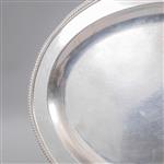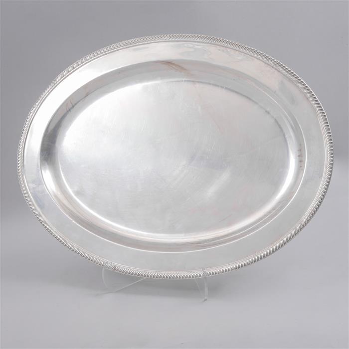 Charola Siglo XX, Kent, Inglaterra Elaborado en plata Sterling sellado FISHER. Diseño oval con filo prensado en estriado. 53 x 39 cm Peso: 1523g Estimado $9,000-15,000