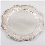Diseño circular con bordes lobulados, decorado con motivos florales y naturales.