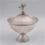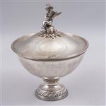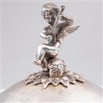 Con gallonados, base circular y tapa con remate de amorcillo.