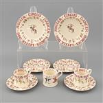 Decorados con escenas circenses, ratones bailarines e inscripciones "CIRCUS", "ACROBAT", "JUGLER", "DANCER", "HORSE", "LITTLE DOG", entre otros.