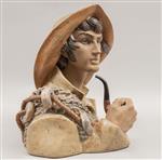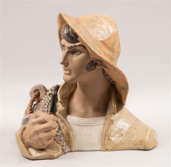 Busto de pescador con pipa y red.