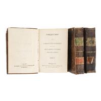 16o. marquilla, XV - XX + 473 + XIV; 469 + XI; 484 + XII p. Tomo I: Constituciones de Chiapas, Chihuahua, Coahuila y Tejas, Durango, Guanajuato y México, reproduce el texto de la Constitución Federal de 1824 y el Acta Constitutiva de la Federación Mexicana. Grabado del Escudo Nacional por José M. Torreblanca. Manchas de pintura en pasta anterior, sin punta superior; sin cofia. Tomo II: Constituciones de Michoacán, Nuevo León, Oajaca, Puebla, Querétaro y San Luis Potosí. Pequeño faltante en margen superior de páginas 81 - 95; sin cofia. Tomo III: Constituciones de Occidente, Tabasco, Tamaulipas, Veracruz, Xalisco, Yucatán y Zacatecas. Deterioro por humedad; sin pie. Pastas y lomos gastados. Encuadernados en pasta dura, en piel. Piezas: 3.