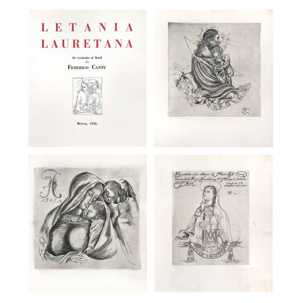 FEDERICO CANTÚ (Cadereyta, Nuevo León, 1907 - Ciudad de México, 1989) Letonia Lauretana,1952 Firmados y fechados 1946 Grabados al buril 55 / 41 Piezas: 19, en carpeta. Presenta detalles de conservación. La carpeta completa consta de 20 grabados. Medidas variables del área grabada de cada una 32 x 27 x 2 cm medidas totales de la carpeta Estimado $44,000-60,000