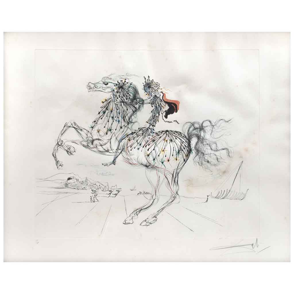 SALVADOR DALÍ (Figueras, España, 1904 - 1989) La chevauchée Firmado Grabado al aguafuerte y punta seca 115 / 300 Presenta ligeros detalles de conservación. 49 x 59 cm Estimado $18,000-26,000