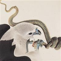Subasta 966, Lote # 62 BB - Blaugrund, Annette / Peterson, Roger Tory. John James Audubon / Audubon's Birds of America. a) Blaugrund, Annette (Editora). John James Audubon. The Watercolors for the Birds of America. New York: Villard Books - The New York Historical Society, 1993. fo. marquilla, 382 p. Primera edición, The New York Historical Society. Editado por Annette Blaugrund y Theodore E. Stebbins, Jr. Textos de Theodore E. Stebbins, Jr., Annette Blaugrund, Amy R. W. Meyers y Reba Fishman Snyder. Profusamente Ilustrado. Encuadernado en pasta dura. b) Peterson, Roger Tory - Peterson, Virginia Marie. Audubon's Birds of America. New York: Abbeville Press, 1981. fo. marquilla, 694 p. Revised edition. Ilustrado. Encuadernado en pasta dura. En estuche. Total de piezas: 2. Estimado $3,000-4,000