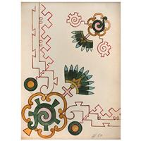 Subasta 997, Lote # 73 ROBERTO MONTENEGRO (Guadalajara, Jalisco, 1885 - Pátzcuaro, Michoacán, 1968) Proyecto para un mural #2 a) Mascarones #62 Firmada Mixta sobre papel 29.5 x 21.5 cm b) #50 Sin firma Mixta sobre papel 29.5 x 22 cm Piezas: 2, enmarcadas juntas Con copia de constancia de opinión de la Galería de Arte Mexicano, abril del 2017. Roberto Montenegro fue un pintor jalisciense cuya obra es considerada una excelsa aportación a la pintura moderna de México. Su mayor contribución artística se encuentra en su producción mural, puesto que los trabajos que hizo entre 1924 y 1928 enriquecieron el movimiento muralista al tratar temas novedosos con un estilo eminentemente decorativo y hasta fantástico. Su excelente capacidad para el dibujo fue un conductor importante para la realización de sus murales, el cual transitó desde líneas definidas y cerradas con tendencia hacia las antiguas formas de inspiración italiana, hasta el uso de contenidos mexicanos mediante figuras de la geometría sagrada de las grecas prehispánicas. Fuente consultada: MOYSSEN, Xavier. Roberto Montenegro. Exposición de homenaje MAM. México. INBA, 1970, pp. 20 y 21. Estimado $55,000-70,000