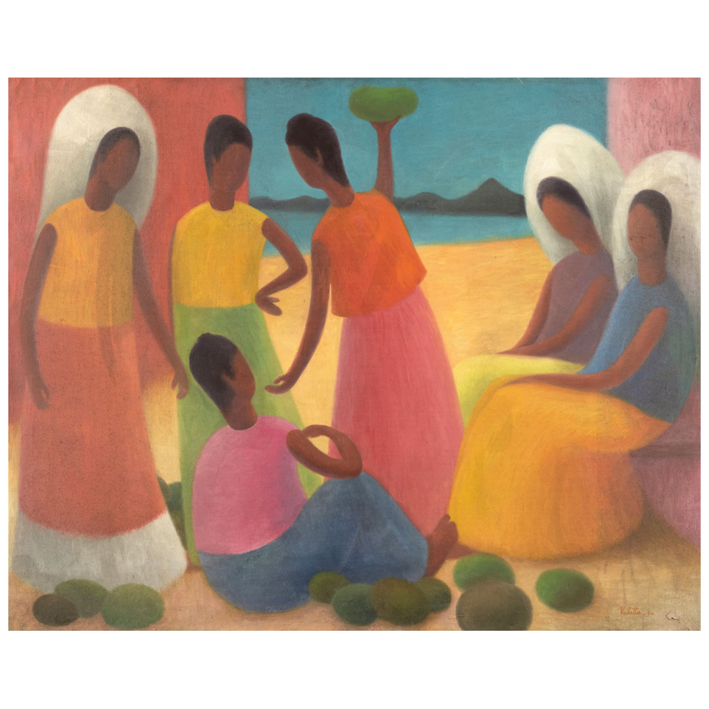 Subasta 997, Lote # 37 VALETTA SWANN (Eastbourne Sussex, Inglaterra, 1904 - Ciudad de México, 1973) Junto al mar Firmado y fechado 64 Óleo sobre tela Presenta restauración y detalles de conservación. Su segundo esposo fue el antropólogo de origen polaco Bronislaw Malinowski, con quien viajó a Norteamérica en 1939. Pronto iniciaron un recorrido por las regiones indígenas de México y Estados Unidos. Valetta Swann, además de pintar, colaboraba realizando los dibujos y las fotografías que servirían para ilustrar las publicaciones de su esposo a partir de una serie de estudios sobre los sistemas de trueque en los mercados indígenas. Expuso su trabajo por primera vez en México en el Palacio de Bellas Artes en 1945. En 1950, Dr. Atl apuntó que: "Esta artista es, esencialmente, una luminista, porque pinta con luz, no a la manera de los puntillistas o los futuristas, sino según su propio saber, creando en el espectador sensaciones vibratorias reales". Fuente consultada: TOVAR DE TERESA, Guillermo. Repertorio de artistas en México. Tomo III. México. Grupo Financiero Bancomer, 1997, Pág. 310. 100 x 125 cm Estimado $120,000-180,000