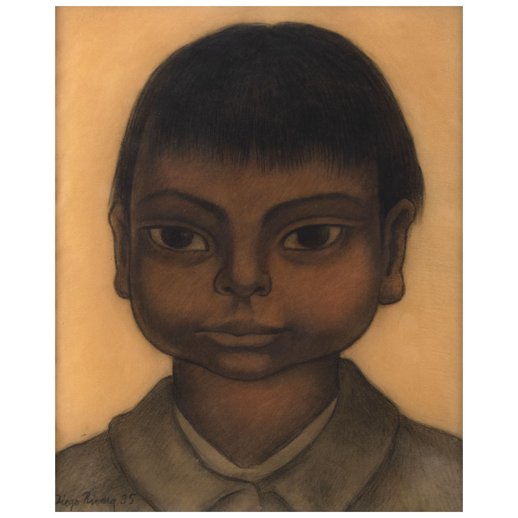 Subasta 997, Lote # 44 DIEGO RIVERA (Guanajuato, 1887 - Ciudad de México, 1957) Cabeza de niño Firmado y fechado 35 Pastel y carboncillo sobre papel Con factura y documentos de compra de Sotheby's Nueva York, mayo de 1994. Con documentos de repatriación de obra y pedimento de importación de los Estados Unidos Mexicanos, junio de 1994. Agradecemos a Juan Coronel Rivera por la verificación de autenticidad de esta obra, octubre del 2020. Procedencia: adquirido en Sotheby's, Nueva York, Arte Latinoamericano, lote 211, 18 de mayo de 1994. "Propulsor de un nacionalismo que se insertaba en el cuadro de una revolución social y a la vez nacional. Rivera defendió y conquistó el derecho a sacudir tutelas espirituales ajenas; pero de ningún modo se encerró en un círculo de hierro, que lo separara de las fuentes universales. Y esto lo reconocieron involuntariamente y contradictoriamente cuantos censuraron las influencias, que en realidad existen en su obra, de los primitivos italianos del Renacimiento, de la Francia clásica y del arte moderno mexicano […] Al exaltar los valores, de su patria, y al crear un lenguaje propio para expresarlos, Rivera contribuyó al reforzamiento de la conciencia nacional de su pueblo, y con su actitud dio un ejemplo a los pueblos colonizados que no se atreven a hablar. Dio a México, y al mundo, un trabajo audaz, poderoso, pleno de valores estéticos, que en parte es el producto de la fuerza creadora de un gran pueblo". Antonio Rodríguez. Fuente consultada: TARACENA, Berta et ál. Diego Rivera. Exposición Homenaje. México. INBA, 1977, pp. 166 y 167. 29.2 x 23.3 cm Estimado $300,000-400,000