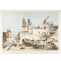 Subasta 1004, Lote # 225 Egerton en México 1830 - 1840. México: Francisco Zamora Millet, 1966. fo. doble marquilla, 10 h. + 12 láminas a color de 45 x 61.5 cm., acompañadas de una breve descripción. Prólogo, traducción y bibliografía de Don Manuel Romero de Terreros. Edición de 1,000 ejemplares numerados, ejemplar número 371. Encuadernado en pasta dura, en piel. Daniel Thomas Egerton viajó a México invitado por su hermano mayor William Henry, quien había emigrado de Inglaterra desde años atrás y le ayudaría a vender su obra pictórica entre conocidos, para que el artista pudiera vivir de su trabajo. Durante esta primera visita, que se prolongó por espacio de un lustro aproximadamente, de 1830 a 1836, recorrió diversas ciudades del centro del país, en busca de los paisajes que plasmó en muchos lienzos que ahora pertenecen a coleccionistas particulares y que tiene oportunidad de adquirir en esta ocasión. Al regresar a Londres, donde Egerton había dejado esposa e hijas, publicó un libro titulado 'Vistas de México', con doce litografías del trabajo realizado en aquel periodo. Se le considera un precursor del paisajismo en México y, por tanto, maestro, en algún sentido, de Velasco, Clausell y el Dr. Atl, aun cuando éstos ni siquiera lo hubieran conocido. Estimado $4,000-6,000
