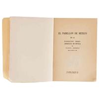 8o. marquilla, 78 p. 81 figuras que muestran diversos detalles decorativos y arquitectónicos del Pabellón. Pastas y lomo con pequeños faltantes y manchas de humedad; texto con sellos de antigua biblioteca. Lomo con pequeño faltante en tercio inferior. Encuadernado en rústica.