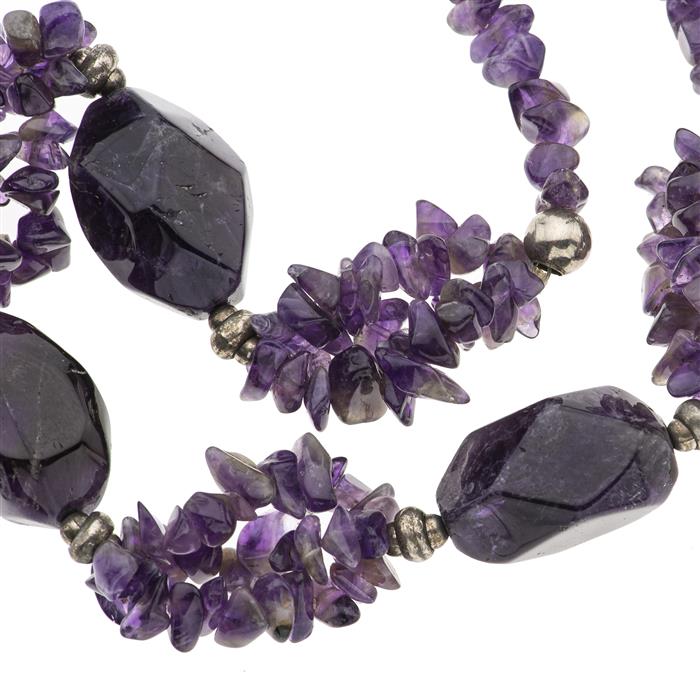 Diseño con amatistas facetadas en distintos tamaños.