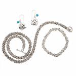Subasta 1085T, Lote # 243 Collar, pulsera y par de aretes en plata .925. Diseño de aros. Peso: 86.2 g. Estimado $1,400-2,000