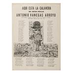 Subasta 1030, Lote # 115 Posada, José Guadalupe. Calaveras: Garbanceras, Jiricuana, Taurina, Alegres, Comercial, del Pagaré, del Ayuntamiento. México: Imprenta de Antonio Vanegas Arroyo, principios del Siglo XX. - Gran Bola de Garbanceras - Que por ser muy Pretensiosas. Se volverán Calaveras Podridas y Apestosas. - Calavera Jiricuana. - La Calavera Taurina (2). - Remate de Calaveras Alegres (2). - Rebunvio de Calaveras (2). - Calavera Comercial. - La Calavera del Pagaré. - La Calavera del Ayuntamiento. - Barata de Calaveras. - Aquí está la Calavera del editor Popular Antonio Vanegas Arroyo, Río, Charco, Alberca, Acequia, Pozo, Alcantarilla, Atarjea, Regadera, Jeringa, Etc. Etc. Etc. (2). - Calavera de la Penitenciaría. - ¡Calavera Zumbona! Hojas volantes. Varios formatos, 40 x 28.5 cm. en promedio. Algunas hojas con manchas de humedad o faltantes. Tres en marialuisa. Piezas: 16. Estimado $14,000-18,000