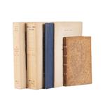 Subasta 1077, Lote # 107 Carreño, Alberto María. Un Desconocido Cedulario del S. XVI / Cedulario de los S. XVI y XVII / Las Criptas de la Catedral / La Cripta Arzobispal / Nuevos Documentos Inéditos de Fray Juan de Zumárraga. a) Un Desconocido Cedulario del S. XVI. México: Ediciones Victoria, 1944. 4o. marquilla, 488 p. Intonso. Encuadernado en rústica. b) Cedulario de los Siglos XVI y XVII. México: Ediciones Victoria, 1947. 4o. marquilla, 750 p. Intonso. Encuadernado en rústica. c) Las Criptas de la Catedral. México: Ediciones Victoria, 1934. 4o., 31 p. Conserva pastas originales en rústica. Encuadernado en pasta dura. d) La Cripta Arzobispal en la Catedral Metropolitana de México. México: Comisión Diocesana de Orden y Decoro, 1954. 4o. marquilla, 23 p. + 38 retratos. Encuadernado en rústica. e) Nuevos Documentos Inéditos de Fray Juan de Zumárraga y Cédulas y Cartas Reales en Relación con su Gobierno. México: Ediciones Victoria, 1942. 8o. marquilla, 124 p. Sin refinar. Encuadernado en pasta dura, en piel. Total de piezas: 5. Estimado $4,000-6,000
