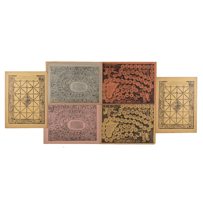 Vanegas Arroyo, A. - Posada, José Guadalupe. Juegos de Mesa: El Nuevo Coyote, Los Charros Contrabandistas y El Juego de la Oca. México: Tip. Arsacio Vanegas Arroyo / Imprenta de Antonio Vanegas Arroyo, principios del Siglo XX. Dos piezas de cada uno. Piezas: 6. Estimado $6,000-8,000