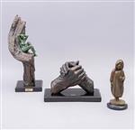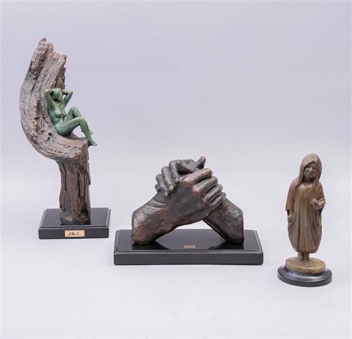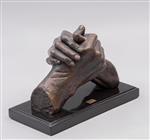 a) JORGE COSTE. Par de manos. Firmado. Escultura en bronce 20/20. Con base de mármol y placa referida. 13 x 16.5 x 11 cm