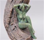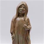 c) ANÓNIMA. Niña con flor. Escultura en metal patinado. Base pétrea. 18 cm de altura