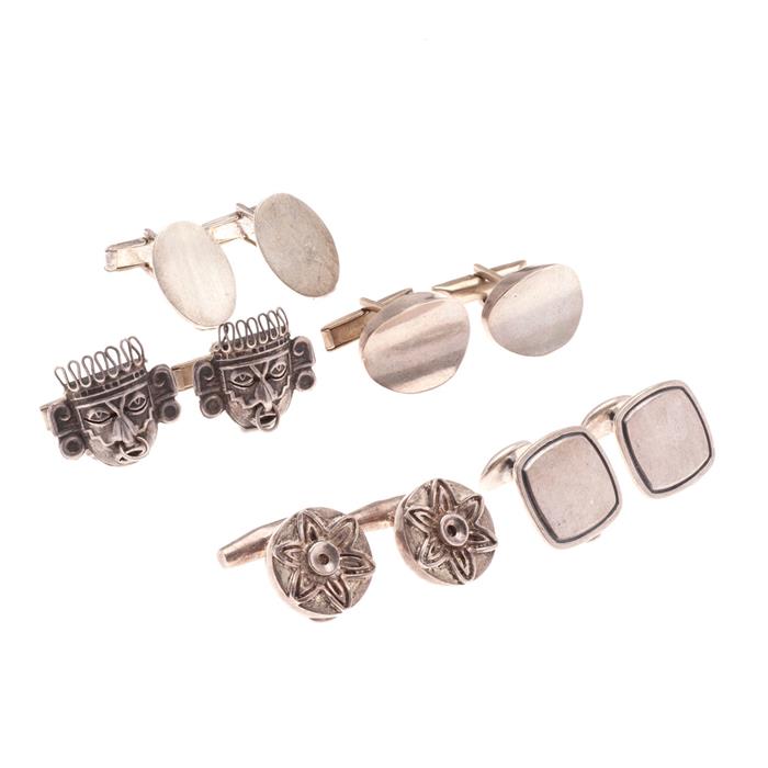 Cinco pares de mancuernillas en plata .925.