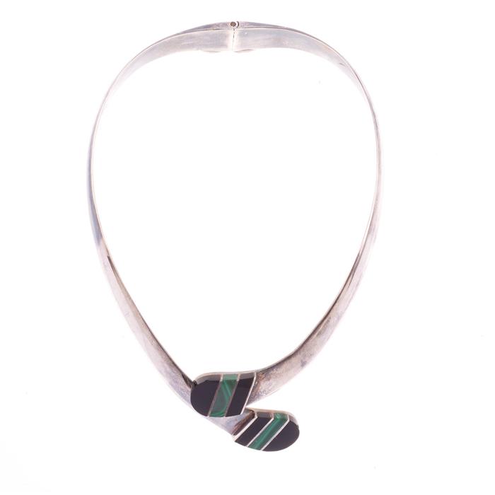 Gargantilla rígida con malaquita y ónix en plata .925.