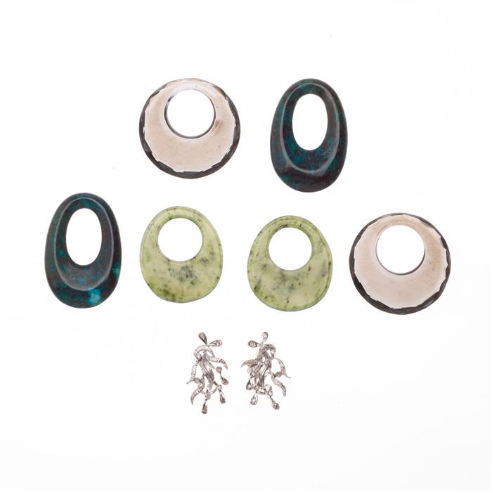 3 pares de colgantes intercambiables de Jadeita, ágata y cuarzo ahumado.