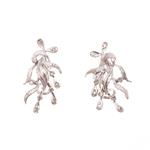 Par de aretes vintage con diamantes, jadeita, ágata y cuarzo ahumado en plata .925.