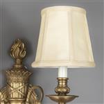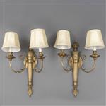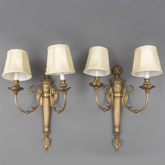 Con pantallas de tela, brazos en "C" y fustes compuestos.