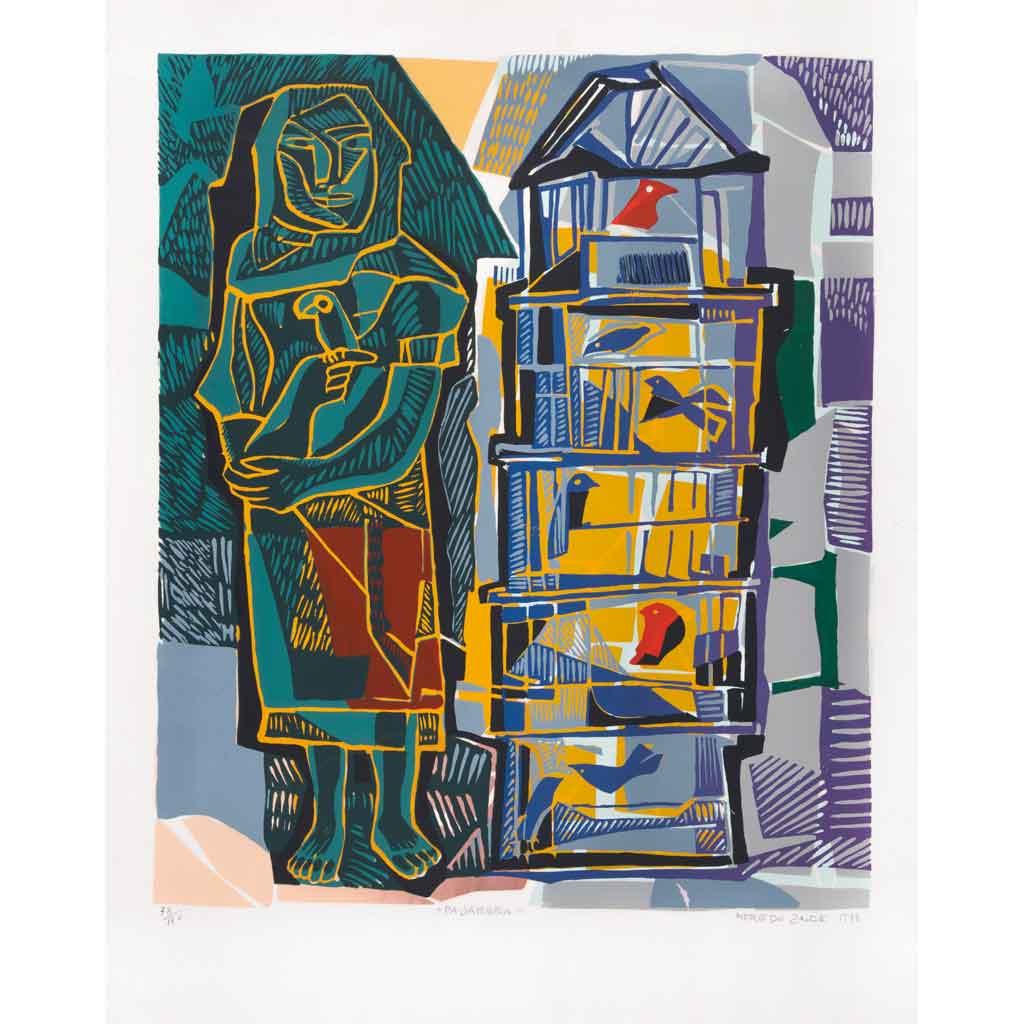 ALFREDO ZALCE (Pátzcuaro, Michoacán, 1908 - Morelia, Michoacán, 2003) Pajarera Firmada y fechada 1988 Serigrafía 78 / 180 Con documento de Luis Morales Corona, enero de 2000. Por un error la obra esta catalogada como litografía en el documento. 60 x 59.5 cm imagen / 72 x 57 cm papel Estimado $8,000-12,000