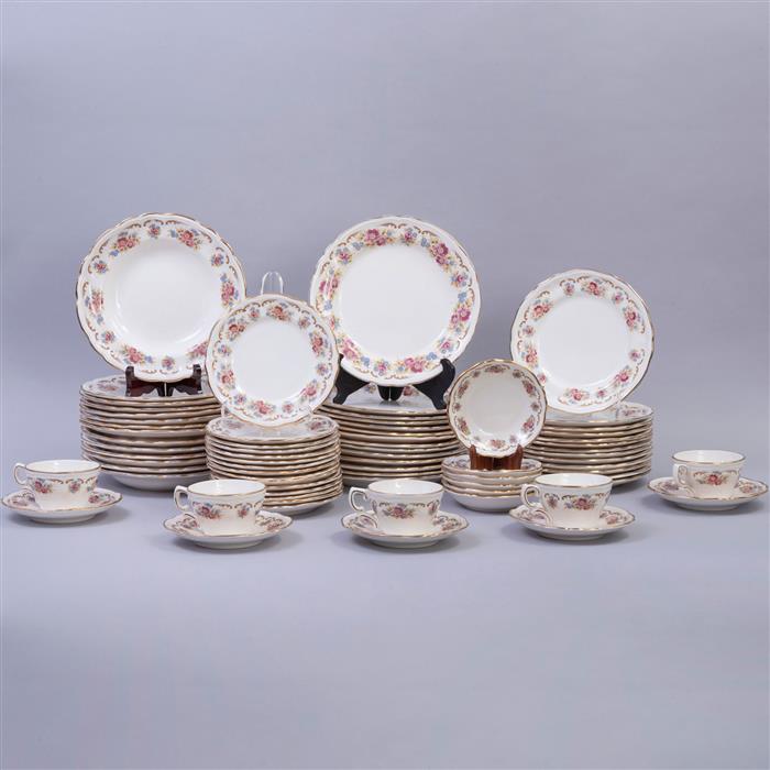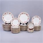Consta de: 14 trinches, 5 platos taza, 6 platos postre, 14 platos soperos, 5 tazas, 13 platos ensalada, 15 plato pan.