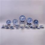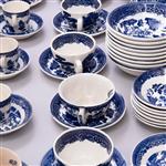Consta de: 6 saleros, 6 tazas, 6 platos para taza, 12 platos para mantequilla, 6 platos soperos, 6 platos para postre, 6 platos para pan, 6 platos para ensalada, 6 platos trinche,