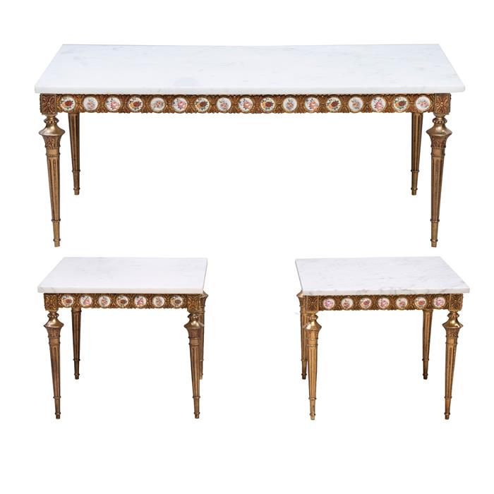 Elaboradas en metal dorado con cubiertas de mármol blanco