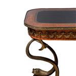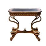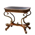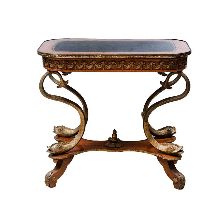 Cubierta rectangular con piel, fustes a manera de peces y soportes semicurvos