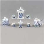 Consta de: 2 azucareras, cremera, depósito, 4 tazas y 2 platos base