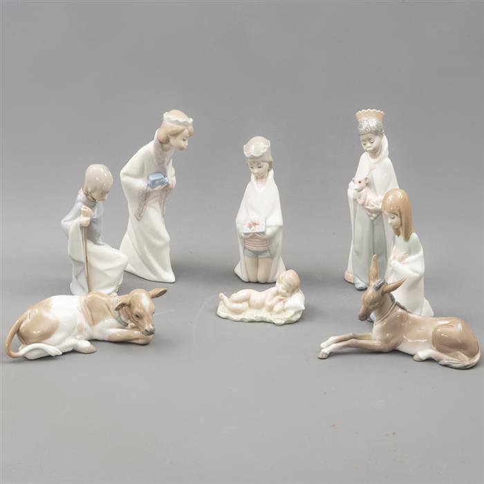 Consta de: Niño Jesús, José, María, 3 reyes magos, burro y vaca