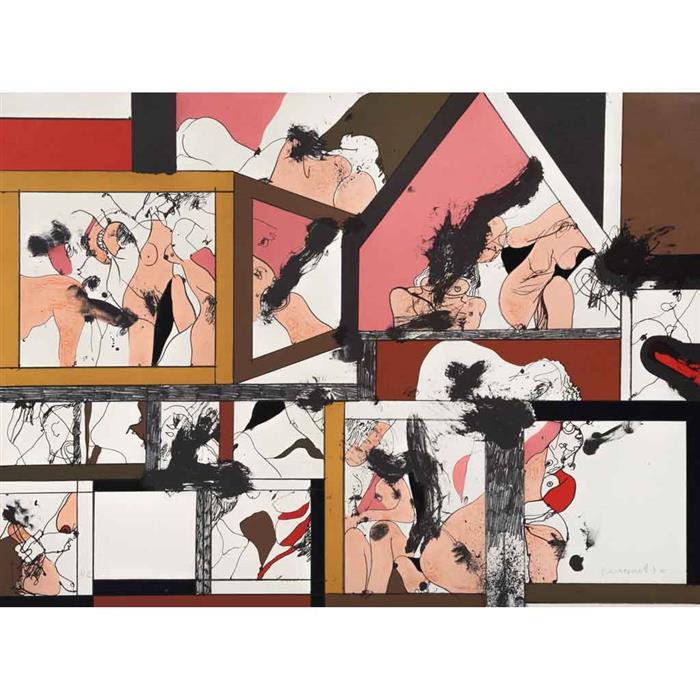 Subasta 1079, Lote # 146 JOSEP GUINOVART (Barcelona, España, 1927 - Barcelona, España, 2007) Ámsterdam N° 2 Firmada y fechada 70 Litografía H. C. Impresa por Ediciones Polígrafa, Barcelona. 56 x 76 cm medidas totales Estimado $6,000-15,000