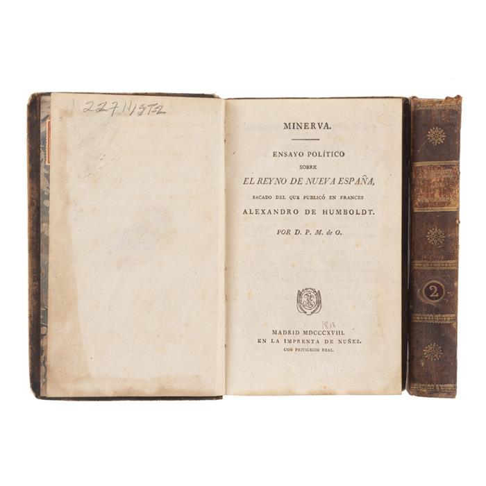 Olive, Pedro María de. Minerva. Ensayo Político sobre el Reino de Nueva España, sacado del que publicó en francés Alexandro de Humboldt. Madrid: Imprenta de Núñez / Ibarra Impresor de Cámara, 1818.