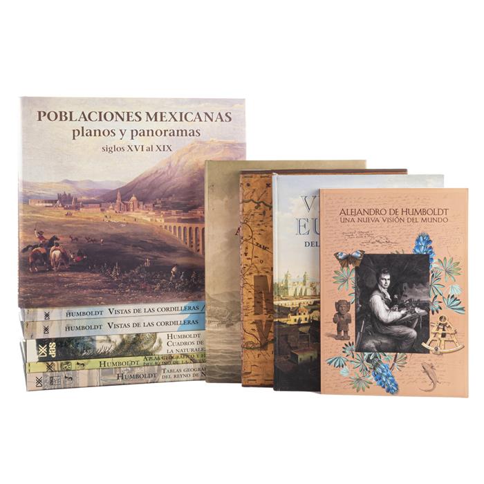 Subasta 1081, Lote # 231 Alejandro de Humboldt y Otros Viajeros en México. México, 1989 - 2009. fo. marquilla y 4o. marquilla. Títulos: Humboldt, Alexander de, Vistas de las Cordilleras y Monumentos de los Pueblos Indígenas de América; Tablas Geográficas Políticas del Reino de Nueva España; Cuadros de la Naturaleza; Atlas Geográfico y Físico del Reino de la Nueva España; Una Nueva Visión del Mundo; González Claverán, Virginia, Malaspina en Acapulco; Mayer, Roberto L., Poblaciones Mexicanas. Planos y Panoramas, Siglo XVI al XIX; Maawad, David (Editor), México y Su Mar; Trabulse, Elías (Introducción), Viajeros Europeos del Siglo XIX en México. Total de piezas: 10. Estimado $4,000-6,000