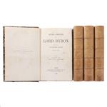 Lord Byron (George Gordon Byron).Oeuvres Complètes. Paris: Librairie Hachette et Cie., 1873 - 1874. 8o. marquilla, VIII + 480; 476; 543; 512 p. Traduites par Benjamin Laroche. Nouvelle édition. Tomos I - IV. Tomo I: Sello seco de antigua librería. Tomo III: De punto a surco de polilla de página 441 a pasta posterior. Encuadernados en pasta dura, lomo en piel. Piezas: 4.