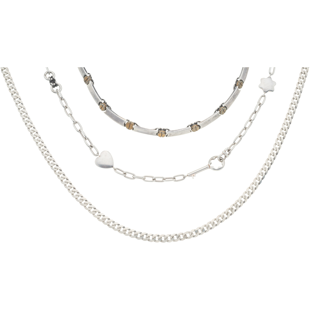 Gargantilla en plata .925. Aplicaciones doradas en metal base. Broche de caja. Largo: 41.0 cm aprox.
