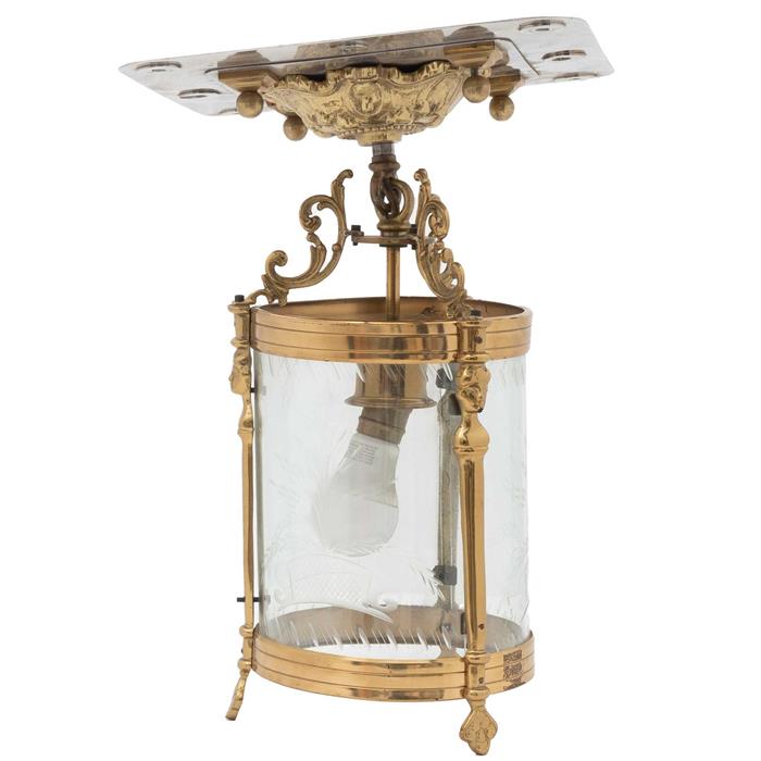 Con pantalla cilíndrica de vidrio con decoración tipo pepita