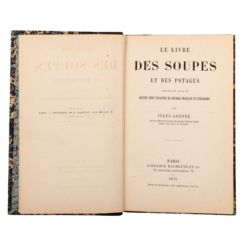 JULES GOUFFÉ (FRANCIA, 1807 - 1877) LE LIVRE DES SOUPES ET DES POTAGES PARIS: LIBRAIRIE HACHETTE ET CIE., 1875