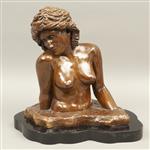 Bronce, patinado en color marrón; base de madera ebonizada