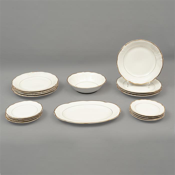 Consta de 8 platos trinche, 8 platos para ensalada, ensaladera y platón oval