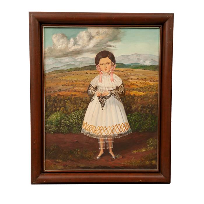 Subasta 1205T, Lote # 78 ANÓNIMO (Siglo XX) Sin título (niña) Sin firma Óleo sobre tela Enmarcado. 50 x 40 cm Estimado $6,000-10,000